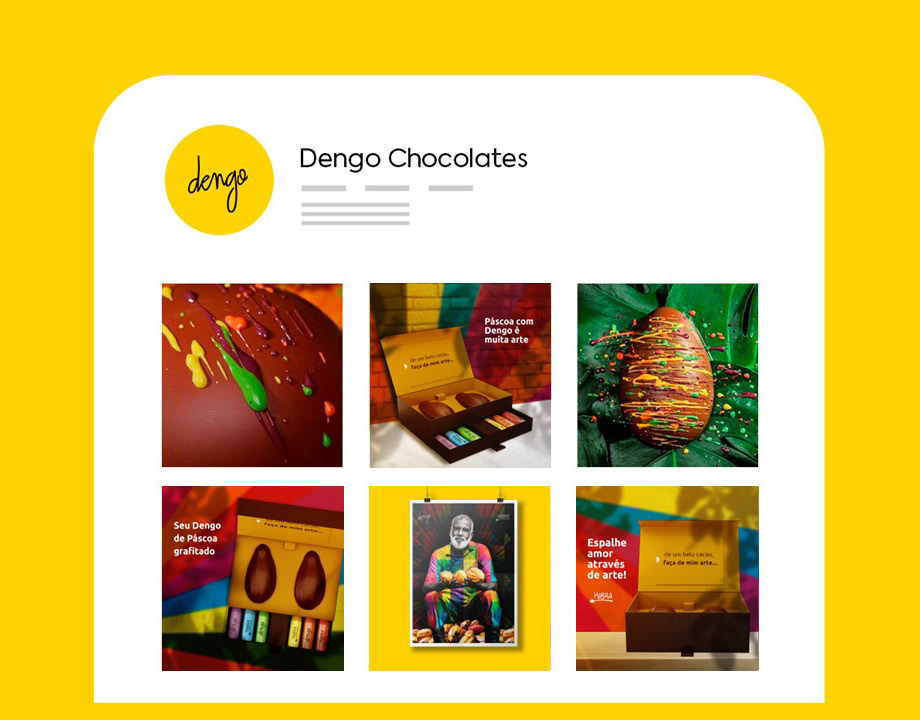 Este é um projeto acadêmico para a páscoa com criações para redes sociais e revista. Uma campanha fictícia entre a marca Dengo e o grafiteiro Kobra.